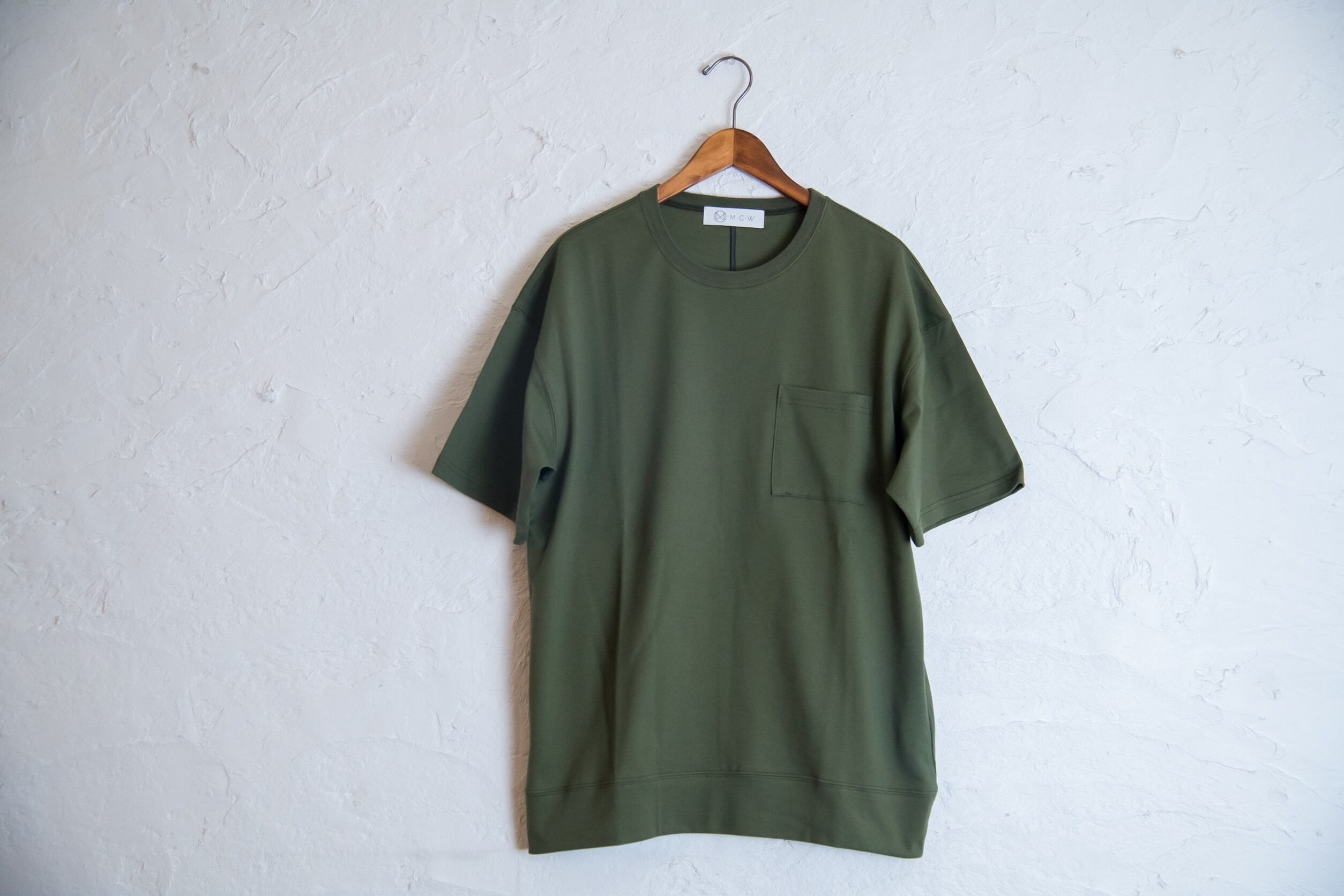 MCWオリジナル ポケTシャツ 度詰め天竺を使用したビッグTシャツ。 ややゆったりとしたボックスシルエットで裾はリブ風の切り替えでアクセントになっております。