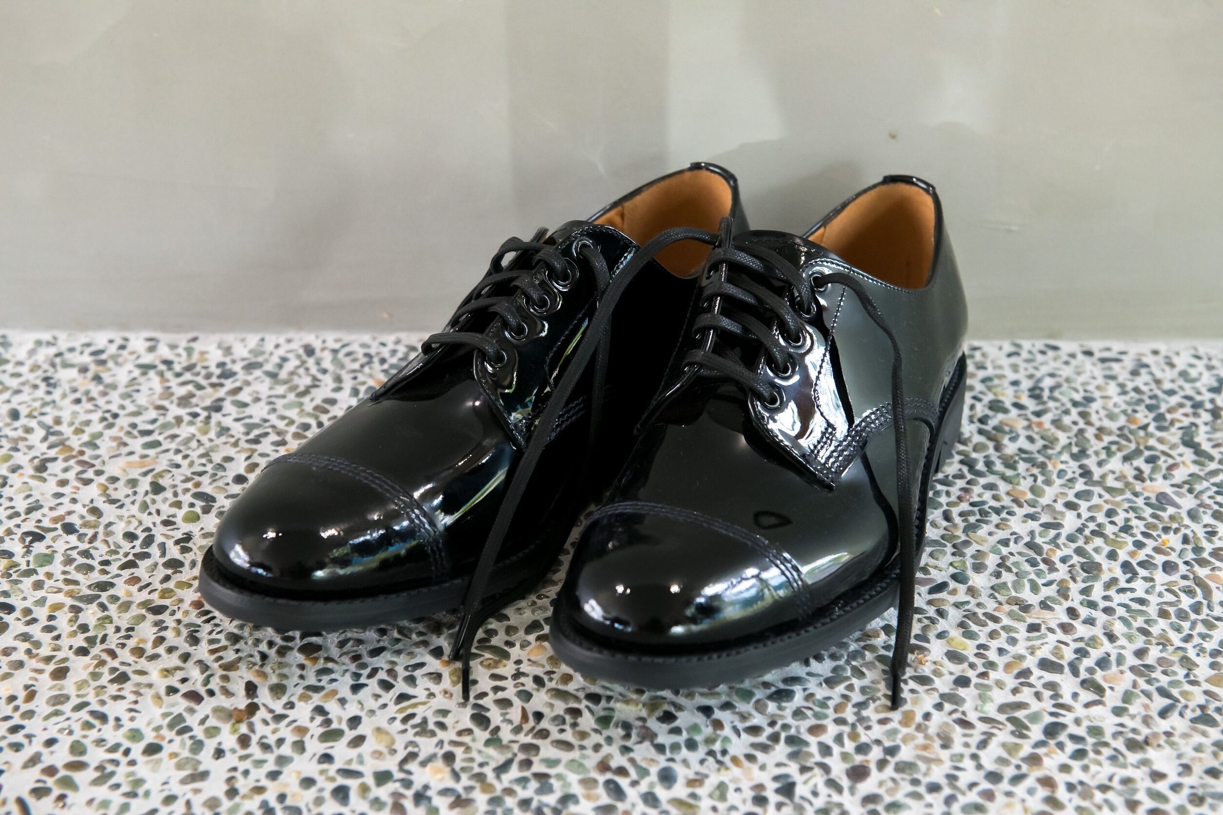 サンダース 別注ミリタリーダービー サンダース定番ミリタリーダービーを当店限定モデルでエナメルのパテントレザー使用で制作して頂きました。 名作の上品で高級感のあるデザインに仕上げてます。